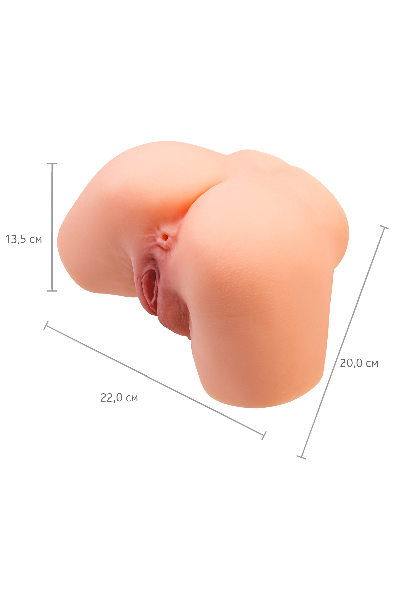 Манящая попка весом 3,7 кг - то, что приятно ощущать в сильных мужских руках. Шелковистый материал напоминает мягкую женскую кожу. Для секса предусмотрено 2 анатомических отверстия с дополнительной стимуляцией: вагинальное и анальное.